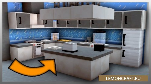 Мод на новую мебель MCDecorations добавляет в игру новую кухонную мебель, которая позволит украсить ваше помещение новыми кухонными шкафами и столами, а так же бытовой техникой.